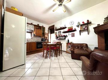 La zona giorno include una cucina funzionale con adiacente area living, pensata per unire convivialità e praticità, offrendo uno spazio accogliente per la vita quotidiana.