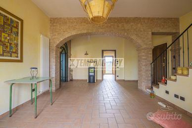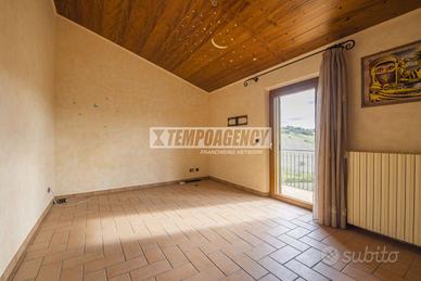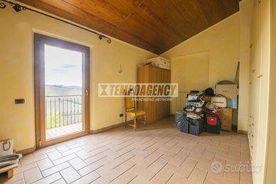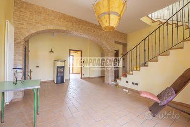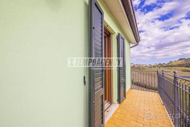 Rif. 018C La Tempoagency di Corridonia propone a Mogliano, precisamente in contrada Macarre, bellissima casa indipendente in ottimo stato con due appartamenti: uno in perfetto stato di manutenzione ed abitabile da subito e l'altro da rifinire a proprio piacimento, in quanto allo stato grezzo. La casa gode di un'ottima esposizione e di un panorama mozzafiato. L'immobile esternamente è in perfette condizioni, in quanto circa 10 anni fa è stata rifatta la facciata e sono stati rifatti i balconi. Il tetto è stato rifatto nel 2003 ed è coibentato. La soluzione è circondata dalla corte privata, privacy e tranquillità sono garantite. Entrambi gli appartamenti hanno affaccio su quattro lati liberi, godendo di luce e aria a 360°. Internamente l'appartamento al piano primo è stato ultimato nel 2002, quindi si può considerare seminuovo, infatti si presenta in ottimo stato di manutenzione ed è abitabile da subito. L'appartamento al piano terra invece è da rifinire a proprio piacimento, in quanto allo stato grezzo. POSIZIONE: Siamo in contrada Macarre, a soli 2 km dal centro di Mogliano, dove si possono trovare tutti i principali servizi essenziali. Ci troviamo a 20 km circa dal centro di Macerata e 30 km circa dal mare di Civitanova Marche. COMPOSIZIONE: L'immobile è composto da due appartamenti, uno al piano terra allo stato grezzo e l'altro al piano primo con mansarda collegata internamente al piano secondo. Al piano seminterrato, abbiamo un grandissimo e comodissimo in garage pluriuso, con doppio ingresso carrabile, oltre ad una tettoia esterna comoda anch'essa per diversi utilizzi. - Piano primo, di ben 125 mq totali, dove troviamo ottime rifiniture interne, è composto da: ingresso su grande soggiorno con affaccio su balcone e stufa a pellet per i termosifoni, cucina abitabile con balcone, locale lavanderia adiacente alla