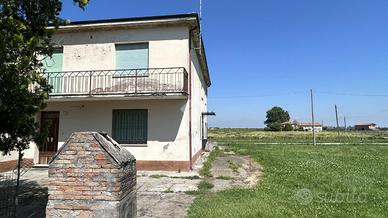 Nella campagna di Santa Maria Codifiume proponiamo soluzione di casa indipendente disposta su due livelli completamente da ristrutturare. Al piano terra è così disposta: ingresso, soggiorno, cucina, ripostiglio e due autorimesse. Al primo piano cinque camere da letto, studio e bagno. L'abitazione è circindata di area cortiliva di proprietà con giardino. L'immobile necessita di una ristrutturazione completa.