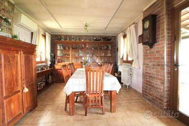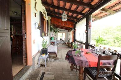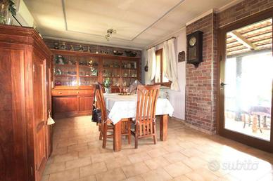 La casa è stata ristrutturata negli ultimi anni, l'ampia zona giorno si affaccia sul porticato dove si ha un ottima vista sulla vallata, la cucina è abitabile. La zona notte è composta da due camere matrimoniali, di cui una con terrazzo. Troviamo un bagno con doccia e un ripostiglio con finestra dove sono già presenti gli scarichi e i tubi per creare un secondo bagno. Le finestre sono state recentemente sostituite, impianto di climatizzazione caldo/freddo con pompa di calore, impianto di riscaldamento con caldaia nuova a condensazione alimentata a gpl. Internet gratuito.