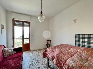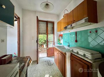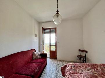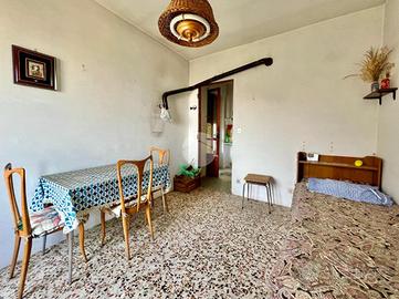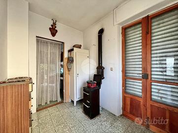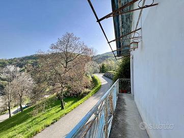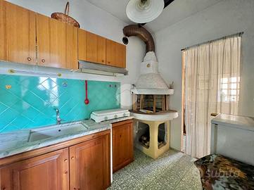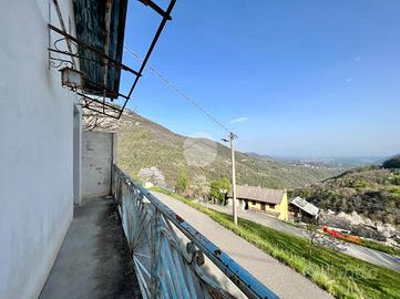 La soluzione presenta 4 locali e l'accesso alla casa è disposto dopo una scalinata che porta all'ingresso e a una piccola porzione di giardino, all'entrata è disposta una cucina collegata a un soggiorno e un disimpegno, dal soggiorno è anche raggiungibile il balcone della casa con vista panoramica sulla vallata, nel disimpegno è posta una stufa a legna essa è anche la fonte di riscaldamento della casa, infine è presente una camera da letto dalla quale vi è l'accesso al medesimo balcone dal quale è possibile accedere anche dal salotto.