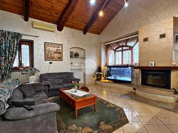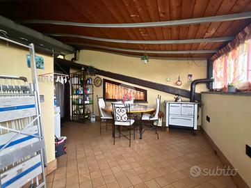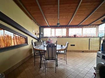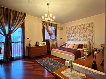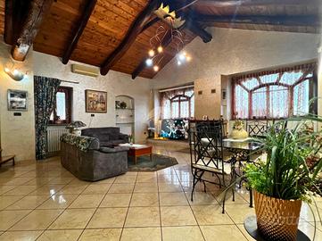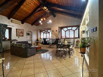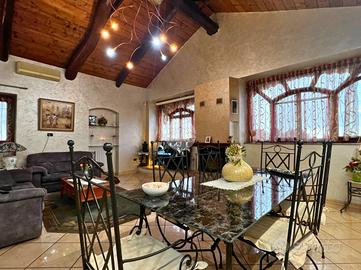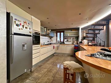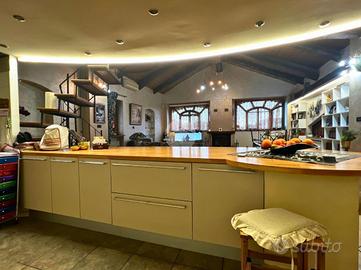 In Strada Carignano proponiamo in vendita una casa indipendente disposta su due livelli, ideale per chi cerca spazi versatili e la comodità di coniugare abitazione e lavoro. Al piano terreno si trova un ampio laboratorio artigianale accatastato come locale commerciale, accompagnato da una tettoia con capienza per due auto; l'accesso carraio avviene attraverso il cortile del capannone vicino, dove è presente una servitù di passaggio. Tramite scala interna si raggiunge il primo piano dove è presente la parte abitativa della casa. La zona giorno è composta da un ampio salone con travi a vista in legno e da una cucina abitabile che, tramite la penisola, separa e definisce gli spazi della cucina dal salone. La zona notte offre tre camere da letto e doppi servizi. Completa il piano un terrazzo. La proprietà si presta a diverse soluzioni, sia abitative che lavorative, rappresentando un'opportunità interessante per chi desidera ambienti distinti ma connessi all'interno della stessa abitazione.