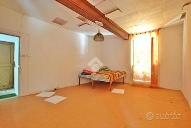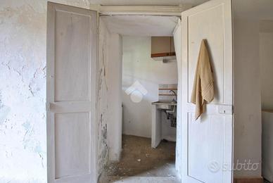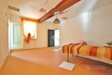 L'ingresso alla prima abitazione è garantito da un cancello collocato all'interno di un cortile confinante, regolato da diritto di passaggio, che conduce direttamente al cortile privato. Al piano terreno si sviluppa una preziosa zona giorno composta da un tinello e da un cucinotto separato, dove spicca un dettaglio architettonico di pregio: il soffitto in legno con travi a vista e pannellature lavorate regala calore e autenticità, trasformando l'ambiente in uno spazio che invita alla convivialità. Questa caratteristica ricercata, se valorizzata con una ristrutturazione mirata, potrebbe diventare il cuore pulsante di un interessante struttura turistica. Completa il piano un vano sottoscala. Il piano superiore è accessibile tramite una scala interna (ma con accesso esterno), comune a entrambe le unità: qui si trovano una generosa camera da letto, dotata di uscita sul balcone, e un bagno con doccia che completa la zona notte. Infine, una seconda scala interna, accessibile dal balcone, conduce all'ultimo piano ad uso sottotetto.