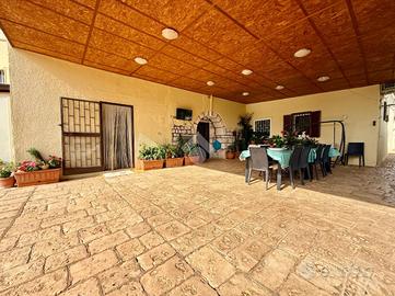 Al piano terra l'ingresso conduce in una comoda cucina abitabile con dispensa, seguita da due trulli in ottimo stato che accolgono un soggiorno ospitale e una camera letto.