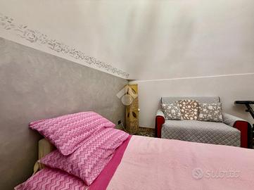 Dal soggiorno si accede a un'ampia matrimoniale impreziosita dalle tipiche volte a botte, con bagno.