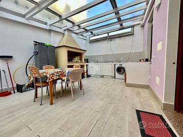A completare l'immobile troviamo la terrazza sovrastante calpestatile, cortile coperto e passo carrabile.