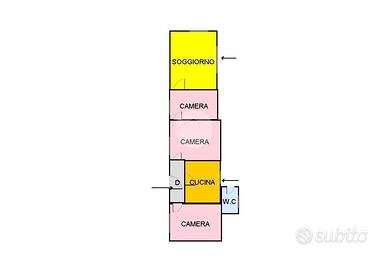 La casa possiede ampi spazi interni di forma lineare e facilmente arredabili, un bagno, una cucina, un soggiorno, tre camere.