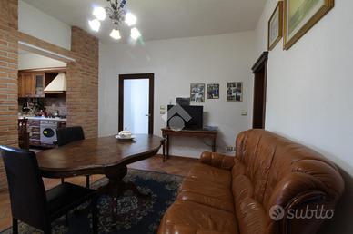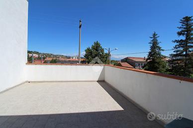 diretto nell'ampio soggiorno doppio con cucina a vista e con l'accesso al terrazzo e a due balconi .Un disimpegno che conduce nella zona notte in cui sono presenti due camere matrimonilai di forma quadrata e un bagno con finestra e doccia multifunzione. E' presnete anche una veranda