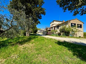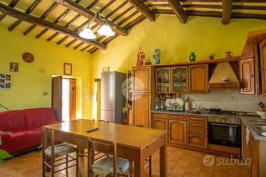 La residenza principale, si sviluppa su più livelli: al piano primo, l'ingresso conduce ad una cucina abitabile con camino, cuore caldo della casa, collegata a tre camere da letto e ad un bagno, un disimpegno introduce a un ulteriore stanza e ad un ripostiglio, oltre a dare l'accesso al piano superiore dove si trova la suggestiva torretta seicentesca che può essere adibita a camera, studio o punto panoramico, da dove ammirare le vallate umbre e laziali. Al piano terra, troviamo un ampia taverna con cucina in muratura, due cantine e un portico che si affaccia sul verde.