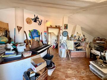 Una particolare scala in legno collega il piano principale alla mansarda, suddivisa in tre ambienti versatili, ideali come studio, zona relax o camere aggiuntive: camino, bagno e 2 balconi con affacci aperti.