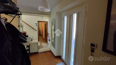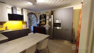 Attualmente l'immobile si sviluppa su tre livelli: al piano terra è presente un ampio monolocale servito da bagno e ingresso indipendente, il garage, la cantina e la pergola. Al piano primo è presente una cucina abitabile, un salotto con camino, un ripostiglio e due pergole l'una a contatto con la cucina, l'altra con la sala.