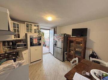 L'immobile si sviluppa su due livelli. Al piano terra si trovano ambienti distinti dedicati alla zona giorno: una cucina abitabile e un salotto separato, entrambi luminosi e ben rifiniti, oltre a un bagno di servizio. Al primo piano si sviluppa la zona notte composta da due camere matrimoniali, una delle quali dotata di terrazzo, e da un secondo bagno.