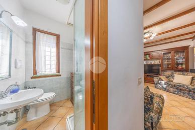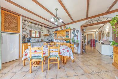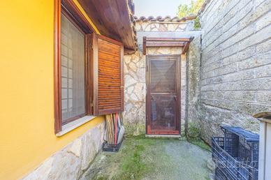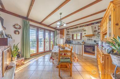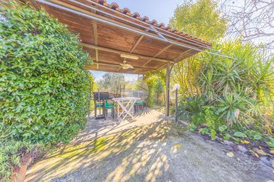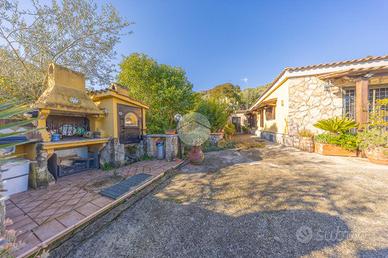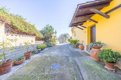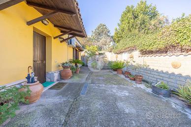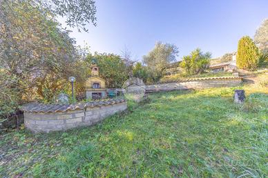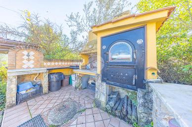 A pochi chilometri dalla capitale, immersa nel verde che regala privacy e tranquillità, proponiamo in vendita una Soluzione indipendente di 95 mq, (Con destinazione d'uso abitativa) completamente ristrutturata e distribuita su un unico livello alla quale è possibile accedere attraverso una strada privata. La distribuzione interna, grazie alla generosità delle superfici, offre la possibilità di rimodulare gli ambienti e realizzare comodamente un trilocale. Attualmente, L'ingresso si apre su un ampio e luminoso soggiorno impreziosito da travi in legno e da una stufa a pellet, che donano all'ambiente un'atmosfera calda e accogliente. Proseguendo troviamo un servizio finestrato completo di box doccia e una confortevole camera da letto matrimoniale provvista di una cabina armadio e di un secondo servizio finestrato completo di vasca. Un piccolo disimpegno del soggiorno conduce alla spaziosa cucina abitale, valorizzata da un suggestivo camino, grazie a una porta finestra, l'ambiente gode di un'ottima luminosità e di una vista mozzafiato sul verde circostante e ci permette di accedere direttamente alla corte esterna e all'ampio terreno di circa 2750 mq. Lo spazio all'aperto, è attrezzato con due forni a legna, un angolo barbecue, un cucinotto e un pratico gazebo ideale per momenti conviviali all'aria aperta. Completano la proprietà un magazzino per il ricovero degli attrezzi, una pratica cantina in cui è collocato il boiler per l'acqua e un ulteriore ambiente adiacente all'abitazione, dotato di servizio, versatile e sfruttabile secondo le proprie esigenze. L'immobile è inoltre dotato di porta blindata, bombolone del gas, impianto di climatizzazione, zanzariere, generatore di corrente, citofono e due posti auto coperti ma L'ampia area esterna consente di parcheggiare liberamente più veicoli, senza particolari limitazioni di spazio. Una soluzione ideale per chi desidera vivere nella quiete della natura senza rinunciare alla vicinanza dei principali servizi.