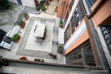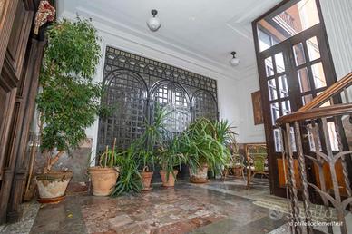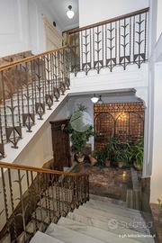 Una delle particolarità più affascinanti di questo palazzo è il ponte caratteristico che unisce il primo piano dell'edificio al grande giardino retrostante, creando una connessione diretta tra la residenza e l'area verde. Il giardino è particolarmente apprezzato per la sua bellezza naturale, con piante secolari che testimoniano il passare del tempo e conferiscono al luogo un'atmosfera unica.