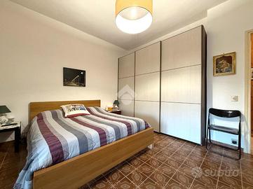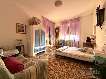 In zona tranquilla immersa nel verde a pochi passi dal centro, casa indipendente disposta su due livelli con cortile e giardino privato di circa 500 mq.
