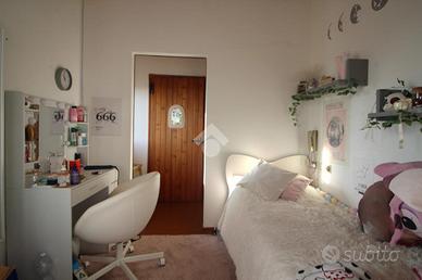Al primo piano troviamo due camere matrimoniali di cui una con accesso al balcone e l'altra con bagno privato, tre camere singole, due delle quali hanno accesso allo stesso balcone. Servono il piano altri due bagni finestrati.