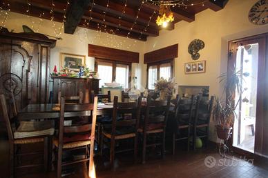 Al piano terra troviamo la cucina abitabile, un ampio soggiorno con camino ed un bagno di servizio. Dal soggiorno si accede al portico con vista sulle colline ed il mare.