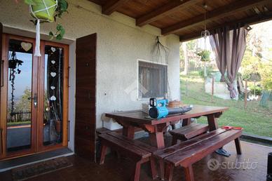 La casa è completamente circondata da giardino, fanno parte della proprietà il garage doppio e la cantina al piano interrato.