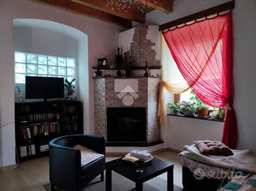 casa INDIPENDENTE su quattro lati, distribuita su due piani abitativi e sottotetto, completamente ristrutturata con CORTILE e CANTINA di proprietà.