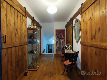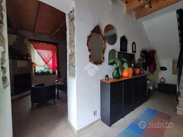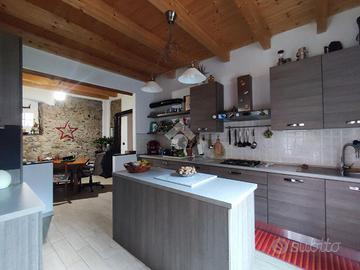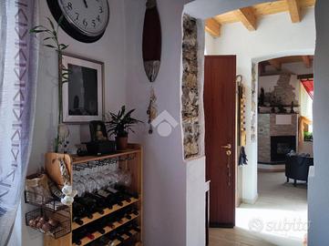 L'immobile è composto al piano terra da zona giorno con cucina abitabile con zona pranzo dotata di cucina a legna e soggiorno fornito di camino con annesso bagno/lavanderia. Salendo le scale, al piano ammezzato troviamo il secondo bagno dotato di box doccia e finestra. La zona notte è composta da 4 spaziose camere utili. Completa la proprietà il sottotetto sfruttabile come ripostiglio.