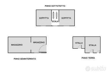 Al piano seminterrato, un ampio magazzino è ideale per il ricovero di auto e attrezzature mentre al piano terra, un deposito e una stalla con forno offrono ulteriori possibilità di utilizzo.