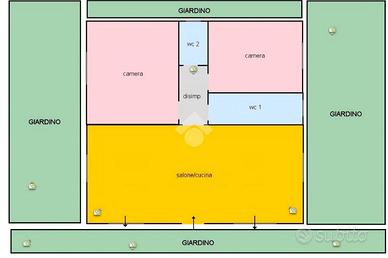 Soluzione indipendente con ampio giardino situata in viale privato a pochi passi dalla centralità della città. La presenza dell'ampio giardino è ideale per chi cerca uno spazio esterno da personalizzare e godere di momenti di relax. L'immobile, si sviluppa interamente al piano terra e comprende tre locali: due camere da letto, ampio salone/cucina e due bagni. (Nel presente annuncio sono presenti foto generate con intelligenza artificiale. )