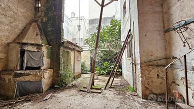 Il piano terra, di 60 mq, dispone di 2 vani con volte a stella, una cucina con solaio dritto, un bagno e un giardino retrostante di 20 mq.