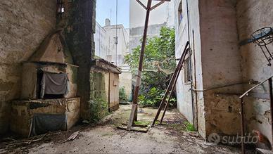 Il piano terra, di 60 mq, dispone di 2 vani con volte a stella, una cucina con solaio dritto, un bagno e un giardino retrostante di 20 mq.