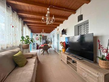 A Porto Cesareo, in zona periferica e tranquilla, proponiamo in vendita una soluzione abitativa ideale per chi desidera vivere lontano dal caos, immerso nella quiete ma comunque a pochi minuti dai principali servizi. L'ingresso si apre su un ampio giardino privato, uno spazio perfetto per creare una zona relax e organizzare pranzi e cene all'aperto con amici e familiari, godendo di momenti di convivialità in totale privacy. Dal giardino si accede all'abitazione, dove un luminoso soggiorno accoglie con i suoi spazi ariosi e funzionali. Sulla sinistra troviamo la cucina, comoda e ben separata dalla zona living. La casa dispone di due camere da letto, entrambe con accesso ai rispettivi bagni privati, garantendo comfort e riservatezza a ogni membro della famiglia o agli ospiti. Completa la proprietà un piccolo stanzino, ideale come ripostiglio o spazio multiuso. L'immobile è dotato di stufa a pellet e climatizzatori, assicurando un ambiente confortevole in ogni stagione dell'anno. Una soluzione pronta da vivere, perfetta sia come abitazione principale che come casa vacanze in una delle località più amate del Salento.