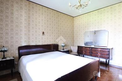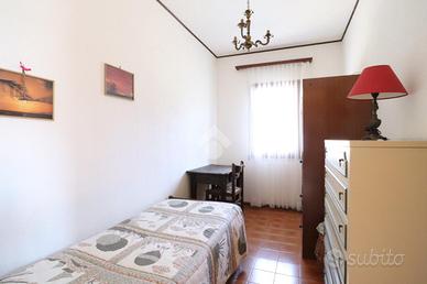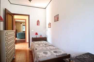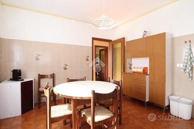 Al primo piano, accessibile tramite una scala esterna, si trova l'ingresso principale che conduce al luminoso salotto, con accesso diretto alla terrazza. La cucina abitabile è spaziosa e ben illuminata, mentre la zona notte comprende una cameretta singola, due camere matrimoniali e un bagno con vasca, completamente piastrellato.