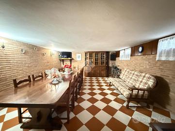 Nel piano seminterrato si sviluppa la taverna di ampie dimensioni, dotata di ripostiglio, caminetto ed angolo bar.