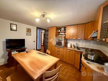 Dalla zona living, invece, scendendo sempre un paio di scalini troviamo una zona con ulteriore ingresso indipendente composta da cucina abitabile, un bagno finestrato con doccia ed un'ulteriore camera.