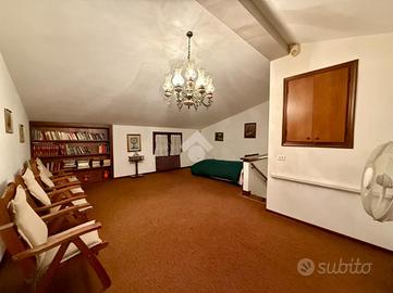 Salendo pochi scalini troviamo tre camere da letto ed un bagno finestrato con vasca, salendo nuovamente pochi scalini troviamo una mansarda di circa 40 mq.