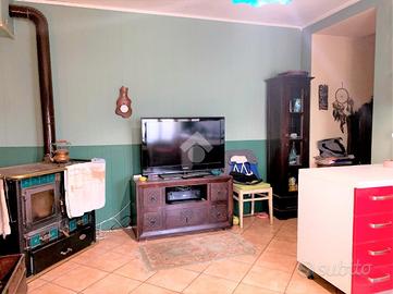 Al piano terreno è presente una cucina, una camera, un bagno, un deposito e un bagno/lavanderia. Il primo piano è composto da tre camere, balcone e terrazzo scoperto. Al piano secondo sono presenti altre due camere, un balcone e un fienile. L'immobile è collegato tutto internamente tramite scala interna che collega i tre piani oltre il piano interrato caratterizzato dalla presenza di una comoda cantina. Completa la proprieta un box auto doppio oltre un altro deposito.