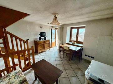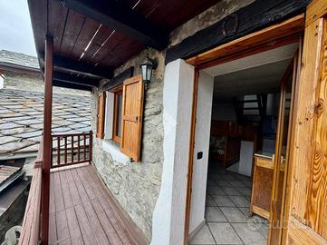 Nella collina di Nus, in frazione Messigné, l'immobile è indipendente, si sviluppa su tre livelli ed è libero su quattro lati. Il piano terra ospita la cucina e il bagno con accesso diretto alla corte esterna recintata e pavimentata in lose. Tramite una scala interna si accede al soggiorno dotato di canna fumaria per eventuale installazione di stufe con accesso al balcone e ingresso dall'esterno. La zona notte ospita una camera con tetto in legno a vista e balcone su vista a sud. Il riscaldamento è autonomo a metano. A pochi metri ci sono a disposizione dei piazzali con parcheggi pubblici.
