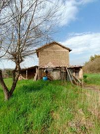 Olevano R: In prossimità della Provinciale, di comodo accesso si propone in vendita Fabbricato su due livelli regolarmente accatastato, composto al p. terra da tre locali cantina/magazzino al piano primo due locali e ripostiglio. Terreno quasi tutto recintato e completamente pianeggiante di 4.500mq, dotato di acqua luce. Ben assolato, comodo e zona abitata. Ideale sia come prima che seconda abitazione