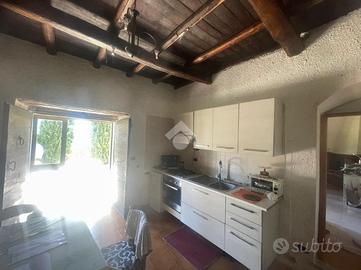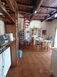 Olevano R.: In contesto tranquillo e verdeggiante, in posizione collinare si propone in vendita fabbricato agricolo/residenziale composto da: P. terra cucina, salone con termocamino, p. primo accessibile tramite scala a chiocciola una camera da letto e bagno. In buone condizioni abitative. Circonda la proprietà un terreno recintato di 6.300mq coltivato a frutteto. Dotato di acqua, luce e termosifoni.