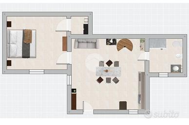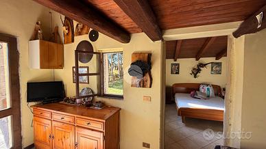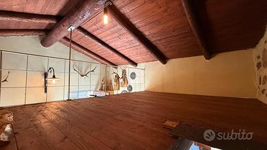 Una scala interna conduce al soppalco, utilizzabile come una stanza aggiuntiva, ideale per ospiti o per creare un ambiente caratteristico.