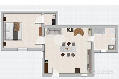 All'interno troviamo un'accogliente zona open space con soggiorno e angolo cottura, una camera matrimoniale luminosa, un bagno finestrato con doccia e un ripostiglio comodo per attrezzi o dispensa.