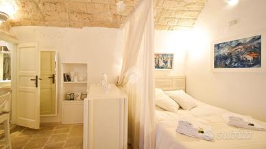 La proprietà, situata al piano terra e curata nei minimi dettagli, è stata sapientemente suddivisa per garantire una netta separazione tra zona giorno e zona notte completa di bagno, ottimizzando gli spazi e rendendoli funzionali. Le volte a botte e il pavimento in pietra dai toni caldi richiamano il fascino della tradizione architettonica ostunese, creando un ambiente autentico e accogliente.