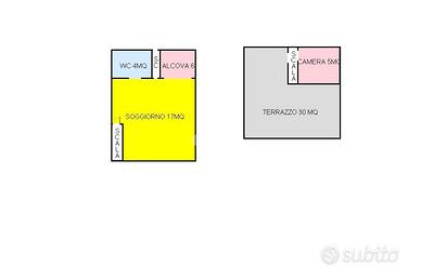 La struttura è posizionata al 1 piano ed accoglie un'ampia sala con angolo cottura e un a alcova che ospita un divano letto, segue un bagno completo di box doccia. Salendo ancora vi è un ammezzato e una stupenda doppia terrazza da cui ammirare il mare e organizzare lo spazio per pranzi e cene.