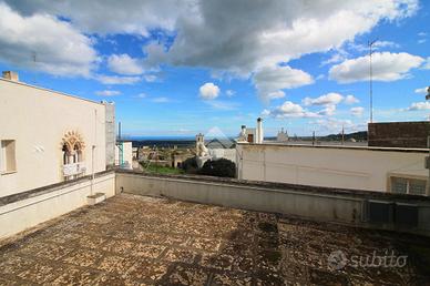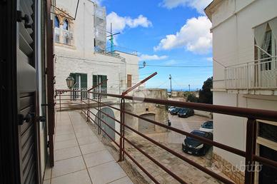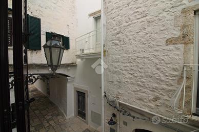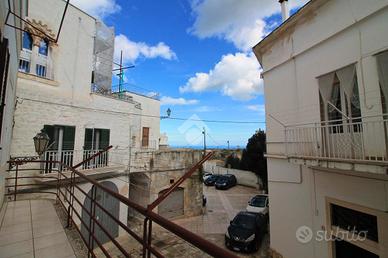 PALAZZO STORICO DEL 600' COMPOSTO DA DUE ABITAZIONI INDIPENDENTI CON VISTA MARE: PRESENTE AGIBILITA'. Nel cuore del centro storico di Ostuni, in un suggestivo vicolo dal fascino senza tempo, sorge un incantevole palazzo dei primi del '600, custode di storia e autenticità. Un antico portone originale conduce alle due abitazioni al primo piano, entrambe con ingresso indipendente. La prima soluzione, più raccolta e caratteristica, accoglie in un vano luminoso con bagno di servizio; una scala interna accompagna al livello superiore dove si apre una seconda stanza con un secondo bagno e accesso diretto a un ampio terrazzo dalla suggestiva vista mare: uno spazio generoso e riservato, da attrezzare per vivere momenti di relax ammirando il sole e l'orizzonte. La seconda abitazione, di metratura più ampia, si distingue per un elegante e luminoso soggiorno con alte volte, una sala pranzo con cucina, un bagno e due comode camere da letto, di cui una con bagno privato. Da qui si accede a un balcone con affaccio sul mare, che regala scorci suggestivi e luce naturale. L'immobile è dotato di agibilità, riscaldamento termoautonomo a metano, pavimentazione in gres e porte originali in legno che conservano tutto il calore dell'epoca. Una proprietà ideale per chi desidera abitare tra mura che raccontano una storia, oppure per chi è alla ricerca di un investimento sicuro e di charme nel cuore della Città Bianca. POSSIBILITA' DI ACQUISTARLA CON GARAGE ADIACENTE DOVE E' POSSIBILE EFFETTUARE IL CAMBIO DI DESTINAZIONE D'USO IN ABITAZIONE.
