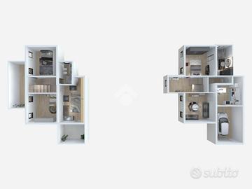 Al primo ed ultimo piano, ci sono le due camere da letto matrimoniali ed un terrazzo abitabile di 16 mq c.a. con vista sul verde privato.