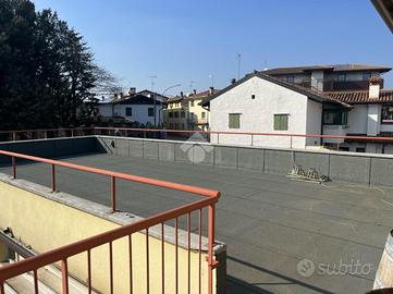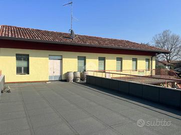 Al piano primo si sviluppa invece un appartamento dotato di un ampio terrazzo abitabile, recentemente isolato. Gli spazi interni necessitano di un intervento di riadattamento, offrendo così l'opportunità di personalizzare finiture e disposizione degli ambienti secondo le proprie esigenze, all'interno di un contesto sempre ben mantenuto.