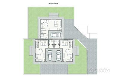 Box singolo adiacente all'abitazione, completato da tre posti auto esterni.