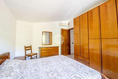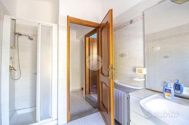 Alle porte del centro di Palombara Sabina, raggiungibile anche a piedi, proponiamo casa indipendente su 2 livelli e posto auto di proprietà. Il villino si trova in posizione strategica e tranquilla: pur essendo immersa in un contesto abitato da altri nuclei abitativi si può godere della propria privacy e riservatezza. L'accesso avviene da Strada Provinciale Pascolare, che permette sia il collegamento alle principali arterie stradali, che al paese molto vicino. Oltrepassato il viale d'accesso in ghiaia con cancello automatico si raggiunge la proprietà, la quale è circondata da una corte condominiale di 2088 mq condivisa con un'altra abitazione. Quest'area è suddivisa tra corte cementata e terreno, completamente recintato garantendo praticità e sicurezza. La casa costruita nel 1991 ha una superficie di 98 mq ed è distribuita su 2 livelli: P.T.: si sviluppa l'intera zona giorno dove troviamo un ampio salone con camino, la cucina abitabile e il bagno con box doccia, mentre il P1 accoglie la zona notte costituita da 2 camere da letto e il bagno con box doccia. L'immobile conserva le rifiniture originali dell'epoca, con esterno rifinito in intonaco e pietra nella parte bassa. Il fiore all'occhiello è il portico di 37 mq, pavimentato e abbellito da travi a vista in legno, perfetto per momenti di relax all'aperto. Completa la proprietà una cantina adiacente, attualmente adibita a vano tecnico. DATI TECNICI: Il riscaldamento è autonomo servito da GPL, camino e predisposizione alla stufa a pellet, acqua e fognatura sono dirette. Il pavimento in gres e gli infissi interni al piano terra in alluminio mentre al piano superiore in alluminio giallo. Gli esterni sono in grate di ferro al piano inferiore, mentre al piano superiore persiane di legno. Questa soluzione è ideale per chi cerca un ambiente accogliente e conviviale, già pronto da vivere senza interventi importanti. Palombara Sabina è un borgo ricco di tradizione agricola, famoso per la produzione di olio d'oliva e