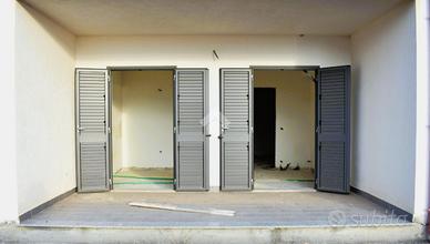 Lo stabile, in calcestruzzo armato, risulta parzialmente rifinito, presenta il vano ascensore e gli infissi esterni, in alluminio, di colore grigio, allaccio al metano e predisposizione per il riscaldamento.