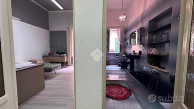 Al primo piano vi è un appartamento parzialmente ristrutturato, momentaneamente adibito in studio dove è possibile realizzare una cucina soggiorno, camera da letto, due bagni e ripostiglio.