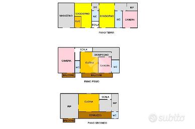 Al piano terra vi è un locale con cucina, soggiorno, due camere da letto, due bagni e ripostiglio;
