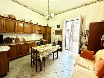 L'ingresso principale si apre su una cucina-soggiorno luminosa e funzionale. La zona notte include una camera da letto matrimoniale, una cameretta singola e un bagno con doccia. Completa il piano un ripostiglio ricavato nel sottoscala, ideale per uso dispensa o deposito.